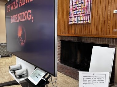 Students from the Mason Gross School of the Arts presented visual displays of quantitative data to enhance communications of climate and energy research (Huh; El-chaer; and Zeng). Also designed and displayed were music videos related to climate change that were created by Professor Akin’s students.