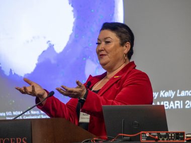 Joellen Russell opened the symposium with a compelling presentation on ocean observation technologies and climate prediction. Russell, who specializes in the Southern Ocean, emphasized the region's outsized importance in global climate regulation, "Fifty percent of all the carbon dioxide that the ocean has taken up went in around Antarctica. Seveny-five percent of all the heat … of the [global] energy budget … went in around Antarctica. That's why we study the Southern Ocean, because it's doing a heavy lift."