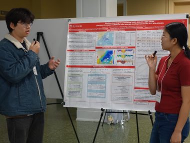 Climate impacts and adaptation strategies were explored across multiple scales, from local flooding risk assessments in Hudson County (Ibukun and Alo) to broader analyses of the Caribbean through-flow warming (Gradone et al.) and Southern Ocean vertical motions (Feinstein and Liang). Several posters addressed green infrastructure and community resilience, including community perceptions of flooding and green stormwater infrastructure in Wilmington, Delaware (Tripuraneni et al.).