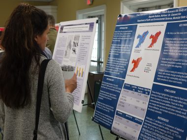 A dynamic afternoon poster session provided opportunities for sharing scholarly work on climate change and energy by researchers from throughout the Mid-Atlantic Region. The call for posters allowed for any topic related to climate change or renewable energy, not restricted to the theme of the Symposium. The 35+ posters presented showcased diverse research addressing ocean and coastal challenges, sustainable technologies, and climate adaptation strategies.