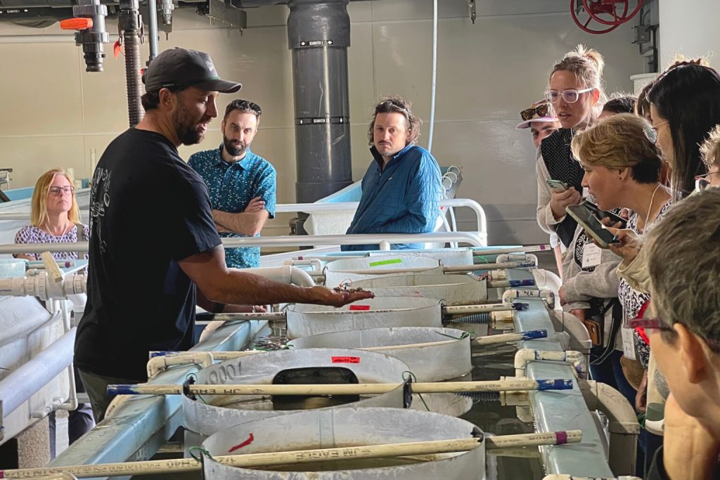 One of the newly designed chapters focuses on Ocean Acidification, using data collected from the Oregon Coast where ocean acidification is a common concern for local shellfish growers. Participants got the chance to connect this west coast OOI dataset to cutting edge research at the Rutgers Aquaculture Innovation Center (AIC). Workshop participants were lead on a tour of the facility by Sean Towers, the AIC Hatchery Manager, who shared how Rutgers researchers are studying oyster seeding, the acidification of local waterways, and how they are working with industry to improve the local aquaculture industry.